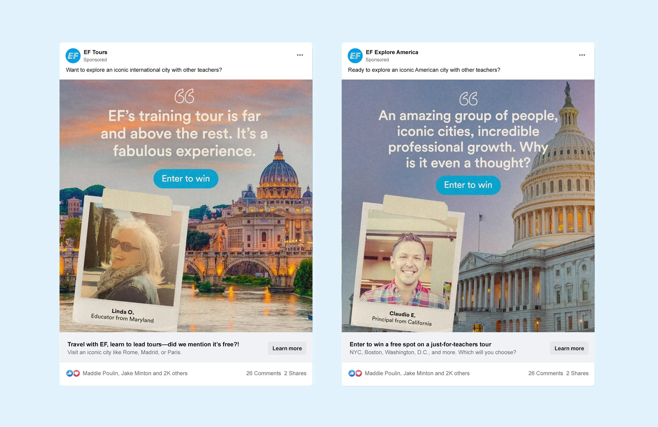 The result: Not only did we come home and create a video profile on Linda’s EF experience, but we featured her as the hero of the following season’s giveaway, which acts as a sales lead-generation campaign to introduce teachers to EF.