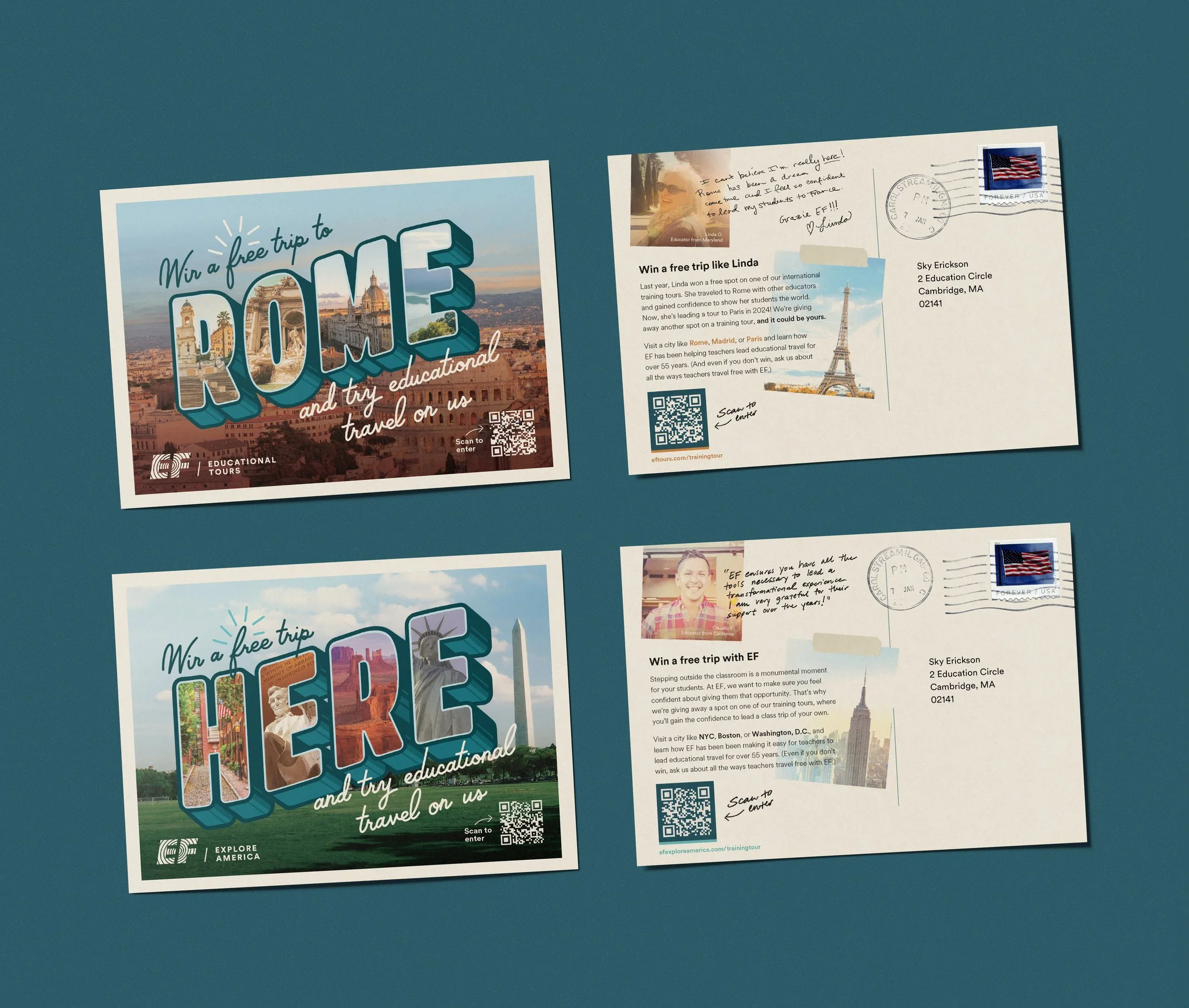 When it was time to build the following season’s training tour giveaway campaign, the content we captured in Rome with Linda drove the entire creative direction. Back-to-school season is the most critical part of the sales calendar for EF Educational Tours. Traditionally the business has relied on the excitement of returning to the classroom to talk to teachers about leading their students on an educational tour. But some of those traditions had begun to feel stale.